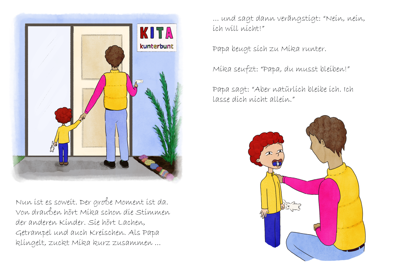 Ein Kinderbuch über die Aufregung, Vorfreude und Abenteuer beim Kita-Einstieg: Erlebe mit Mika ihren ersten Tag in der Kita. Freu dich auf Turmbau-Wettbewerbe, fühle alle möglichen Gefühle und träume mit Mika von weiteren spannenden Kita-Tagen.